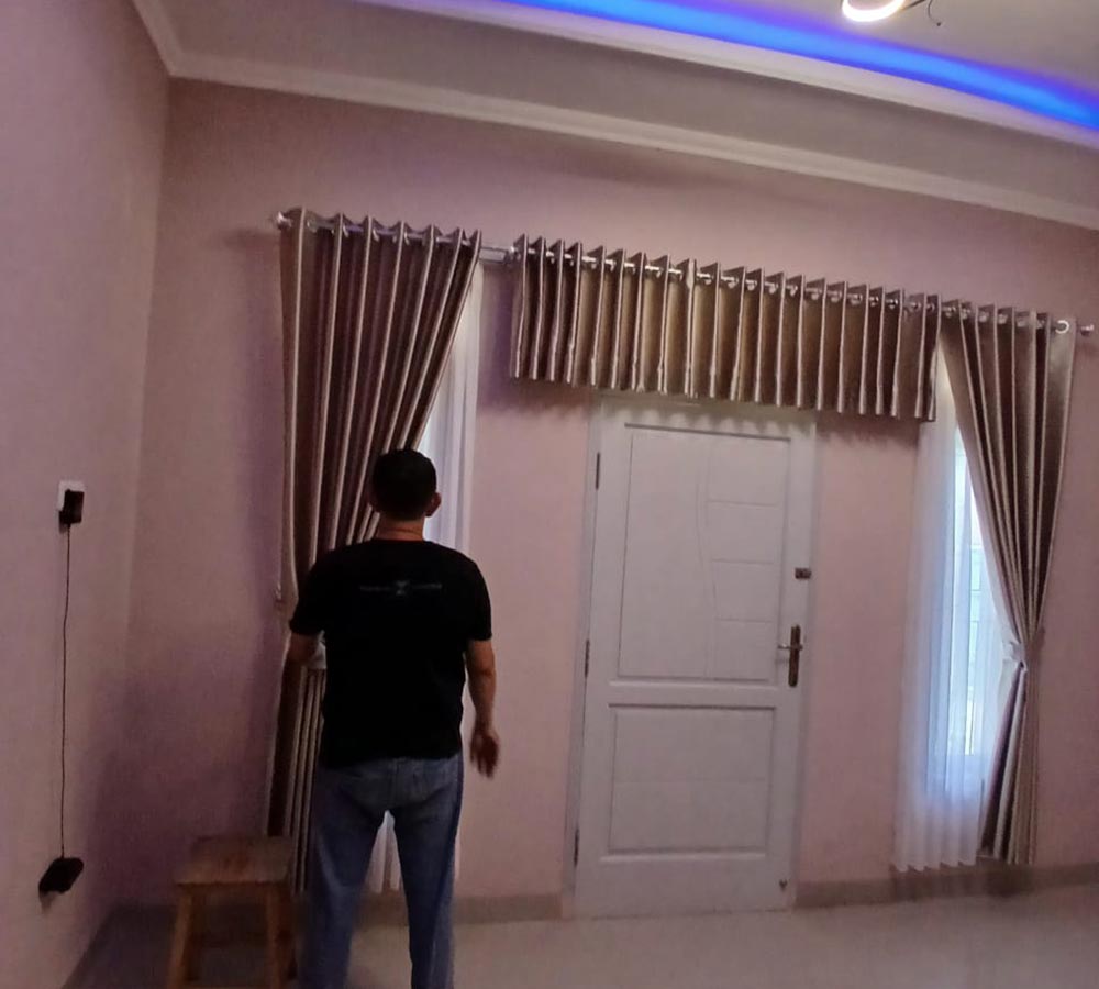 Bahan kain gorden untuk ruangan Anda hanya dijahit oleh team penjahit kami yang sudah berpengalaman, jaminan jahitan rapih.
